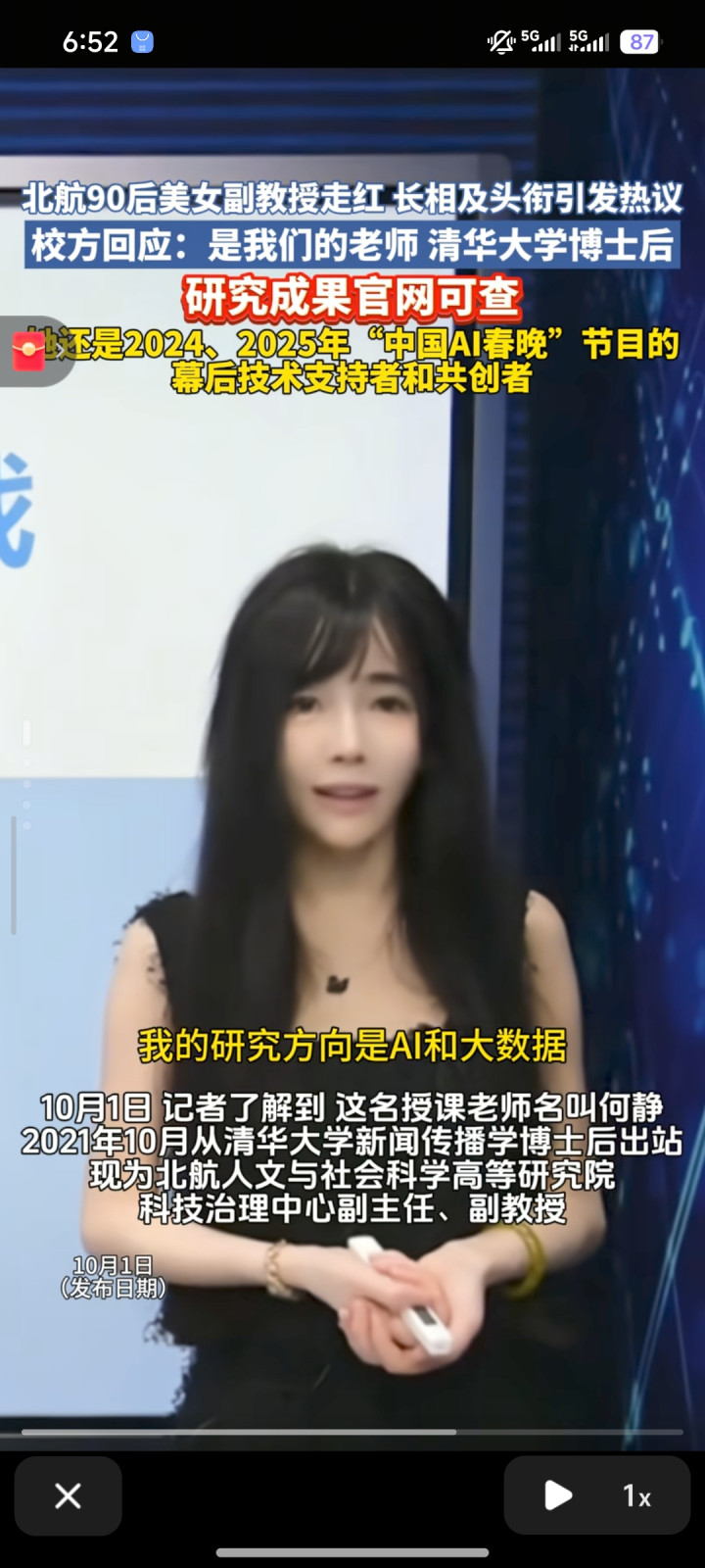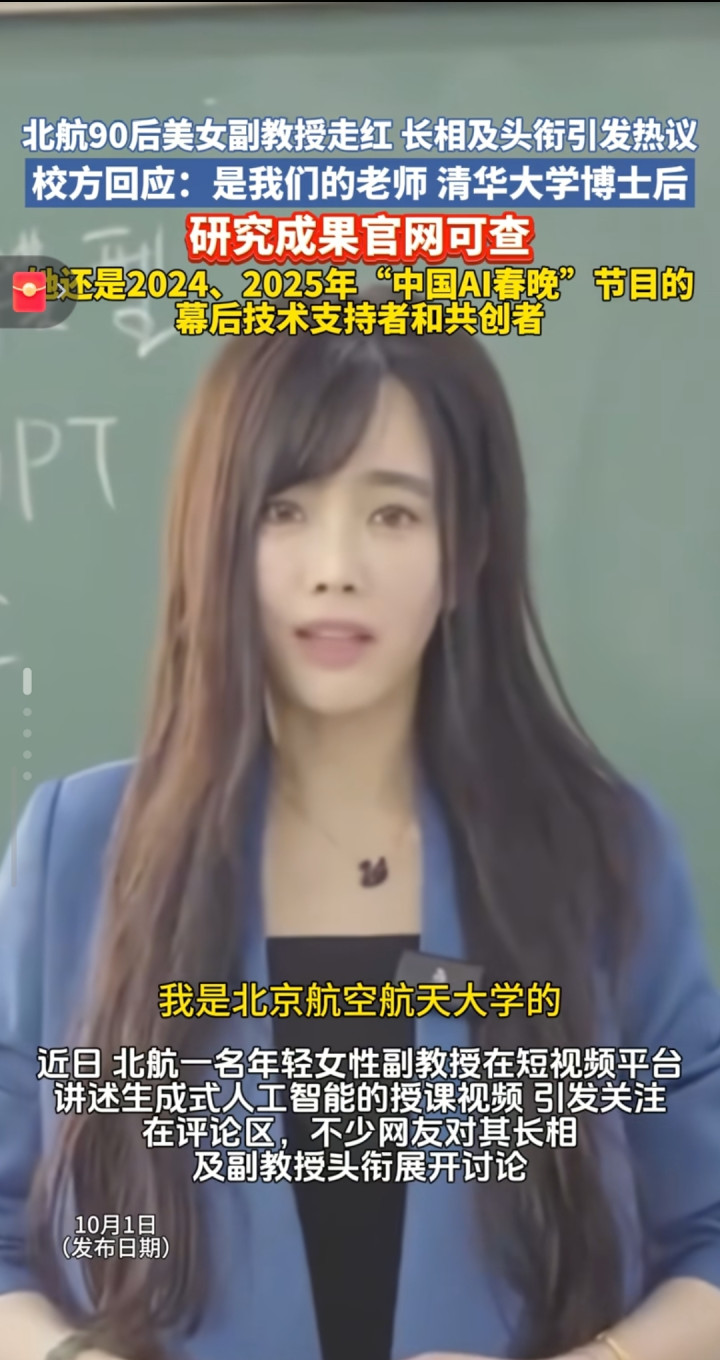 北航的何静,最近火得有点“被动”。她只是在抖音上讲了几节关于AI的课,讲得通俗易懂,结果视频爆了。可评论区画风却歪了:“这老师也太年轻了吧?”“长得这么好看,真是副教授?”“是不是靠脸出圈的?”